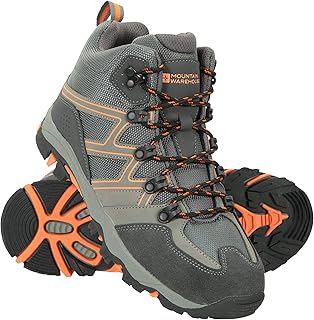 Mountain Warehouse Bottes de Marche et randonnée Oscar pour Enfant- Robustes et Respirantes - en Daim - Dessus synthétique en Maille - pour Camping et randonnée Gris Fer 37
