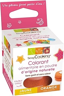 Afficher l'information. Cet article : Colorant artificiel en poudre Orange, Scrapcooking. 8,20 € (410,00 €/kg) ScrapCooking Colorant Alimentaire en Poudre Noir 5 gms. 3,10 € (620,00 €/kg) SCRAP COOKING sc4039aaa. Colorant alimentaire en poudre orange 5 gr. Ref : 4032. COLOREZ VOS DESSERTS - Un colorant alimentaire artificiel orange sous forme de poudre pour réaliser de jolies préparations avec cette couleur vive et intense. Très concentré, il est à doser selon le résultat souhaité. Goût neutre.