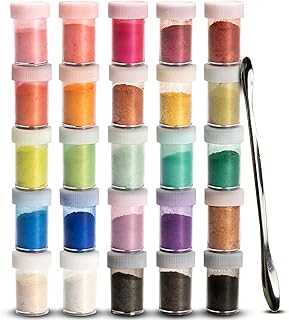 MICA POUDRE NATUREL 25 Couleurs x 10g - Poudre Peinture Métallique Pailleté -Colorant resine epoxy,Pigment resine epoxy -Colorant Savon -Maquillage, Poudre Nail Art, Colorant Gloss, Pigment Gloss-250g