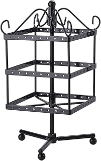 Cabilock Métal Fer Carré Rotatif Porte-Bijoux 4 Niveaux Boucle d'oreille Présentoir Collier Bracelet Boucle d'oreille Bijoux Organisateur de Stockage (Noir)