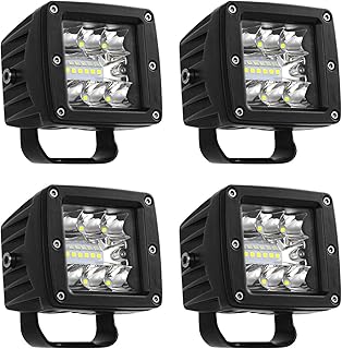 URAQT 4 Pouces 60W Projecteur Phare de Travail LED, Projecteur Flood Combo Feu de Brouillard Lampe Conduite 4 Pouces LED Phare Longue Portée de Lumière Conducteur de Véhicule Hors Route Bateau Cabine