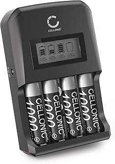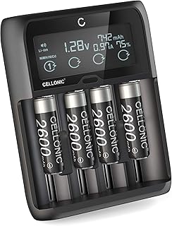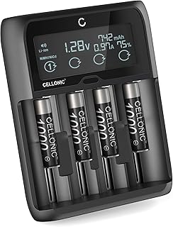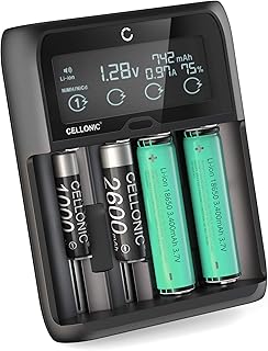 CELLONIC® Chargeur de Piles AA AAA Lithium 18650 LiFePo4 Chargeur pour Piles Rechargeables Rapide 4 Slots Chargeur Batterie AAA AA avec Affichage Écran LR03 LR6 Chargeur de Piles USB Chargeur AA AAA