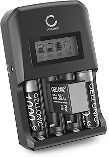 CELLONIC® Chargeur de Piles + 9V 250mAh, Chargeur AAA AA 9V avec 4 Compartiments et Affichage, Chargeur Rapide Chargeur Piles AA AAA 1.2V Battery Charger LR03 LR6