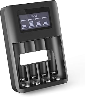 CELLONIC® Chargeur de Piles AA AAA USB avec 4 Slots Chargeur AAA AA USB Chargeur Rapide pour Piles Rechargeables avec écran Chargeur Batterie AAA AA avec Affichage LR03 LR6 Chargeur de Piles USB