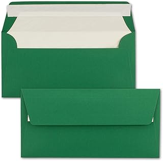 FarbenFroh Enveloppes à Lettre Format Long avec Papier de Soie 110 g/m² 110 x 220 mm 25 Stück Vert foncé avec Doublure Blanche.