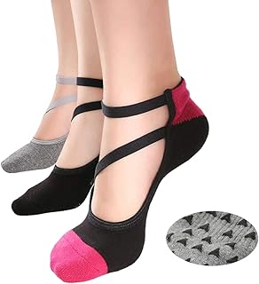 Yongbest Femmes Yoga Chaussettes,2 Paires Chaussettes Antidérapantes Grip Chaussettes Antidérapantes pour Pilates,Pure Barre,Ballet,Danse