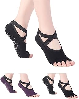 PUTUO Chaussettes de Yoga Femme Chaussettes Antiderapantes en Coton, Femme Chaussettes avec Orteils pour les sports: Yoga Pilates Danse Sport Trampoline Polaires, 4 paires