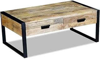 vidaXL Bois de Manguier Massif Table Basse Table d'Appoint Bout de Canapé Table de Salon avec 2 Tiroirs Maison Intérieur 100x50x45 cm