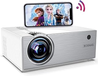 Vidéoprojecteur WiFi, BOSNAS Mini Projecteur Portable 5800 Lumens Natif 720P, Supporté 1080P HD, 200' Rétroprojecteur LED Home Cinéma Compatible TV Stick PS4 Laptop Smartphones