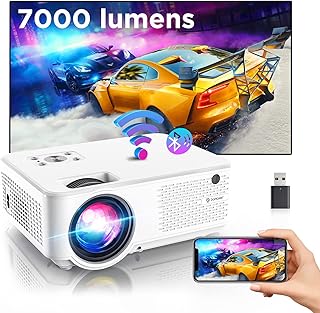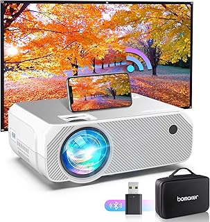 Bomaker WiFi Vidéoprojecteur, 6500L Wireless Screen Mirroring Outdoor Movie Projecteur, HDMI Retroprojecteur Soutien 300'' Display et HDMI USB VGA, pour Phone/ Laptops / PC