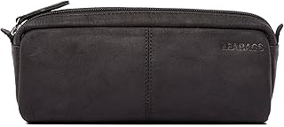LEABAGS Fort Wayne Trousse en cuir de buffle véritable Style vintage I Trousse à crayons I Petite trousse à maquillage I 9 x 6 x 20 cm - Noir - noir,
