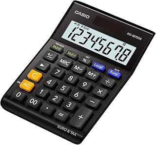 Casio MS8E Calculatrice de Bureau Alimenté par Batterie solaire Conversion de Devises, Pieds en Caoutchouc, Bouton de Correction rapide, Solaire/à Piles Noire