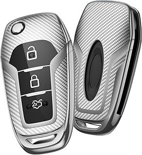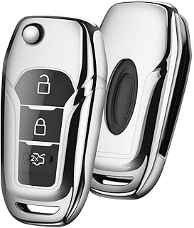 OATSBASF Ford Auto Clés Housse Coque de Protection pour Ford,Mondeo,Fiesta,Focus,Galaxy,Mustang,Kuga,Fusion Titanium,3-Touches en TPU Sac pour Clé Voiture Ford(Argent)