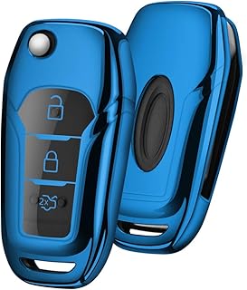 OATSBASF Ford Auto Clés Housse Coque de Protection pour Ford,Mondeo,Fiesta,Focus,Galaxy,Mustang,Kuga,Fusion Titanium,3-Touches en TPU Sac pour Clé Voiture Ford(Bleu)