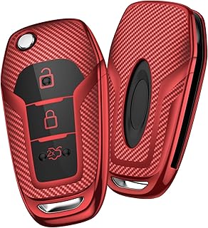 OATSBASF Ford Auto Clés Housse Coque de Protection pour Ford,Mondeo,Fiesta,Focus,Galaxy,Mustang,Kuga,Fusion Titanium,3-Touches en TPU Sac pour Clé Voiture Ford(Rouge)