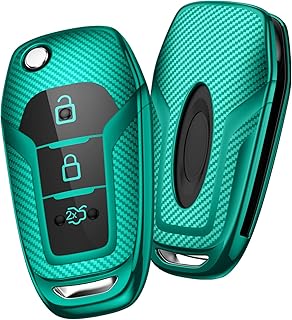 OATSBASF Ford Auto Clés Housse Coque de Protection pour Ford,Mondeo,Fiesta,Focus,Galaxy,Mustang,Kuga,Fusion Titanium,3-Touches en TPU Sac pour Clé Voiture Ford(Vert-Bande)