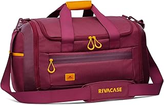 RIVACASE Sac de sport pour homme et femme Spacieux 35L Sangle réglable Résistant à l'eau Poches sécurisées antidérapantes réfléchissantes Voyage avec poches latérales 5331 Dijon, rouge bordeaux